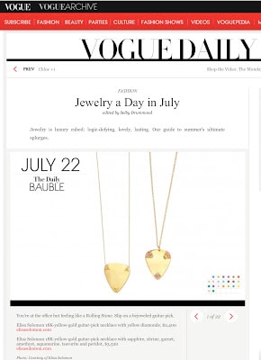It is such a huge honor to have my jewelry selected for this special jewelry section! Vogue.com features one piece each day this month, and I am thrilled that they picked my necklaces!!! Vogue.com calls these items “summer’s ultimate splurges.”