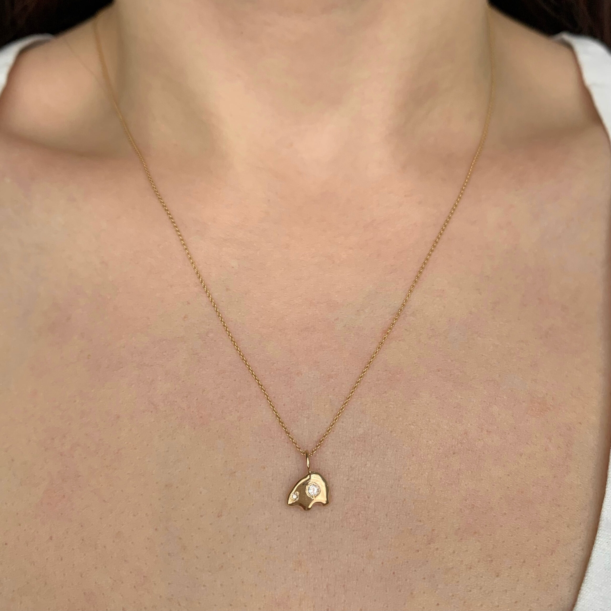 The perfect jewel for an animal lover. The gold bear charm is set with a rosecut white diamond eye and heart. This 14 karat gold bear charm is available in yellow, pink, or white gold. Handcrafted by Elisa.