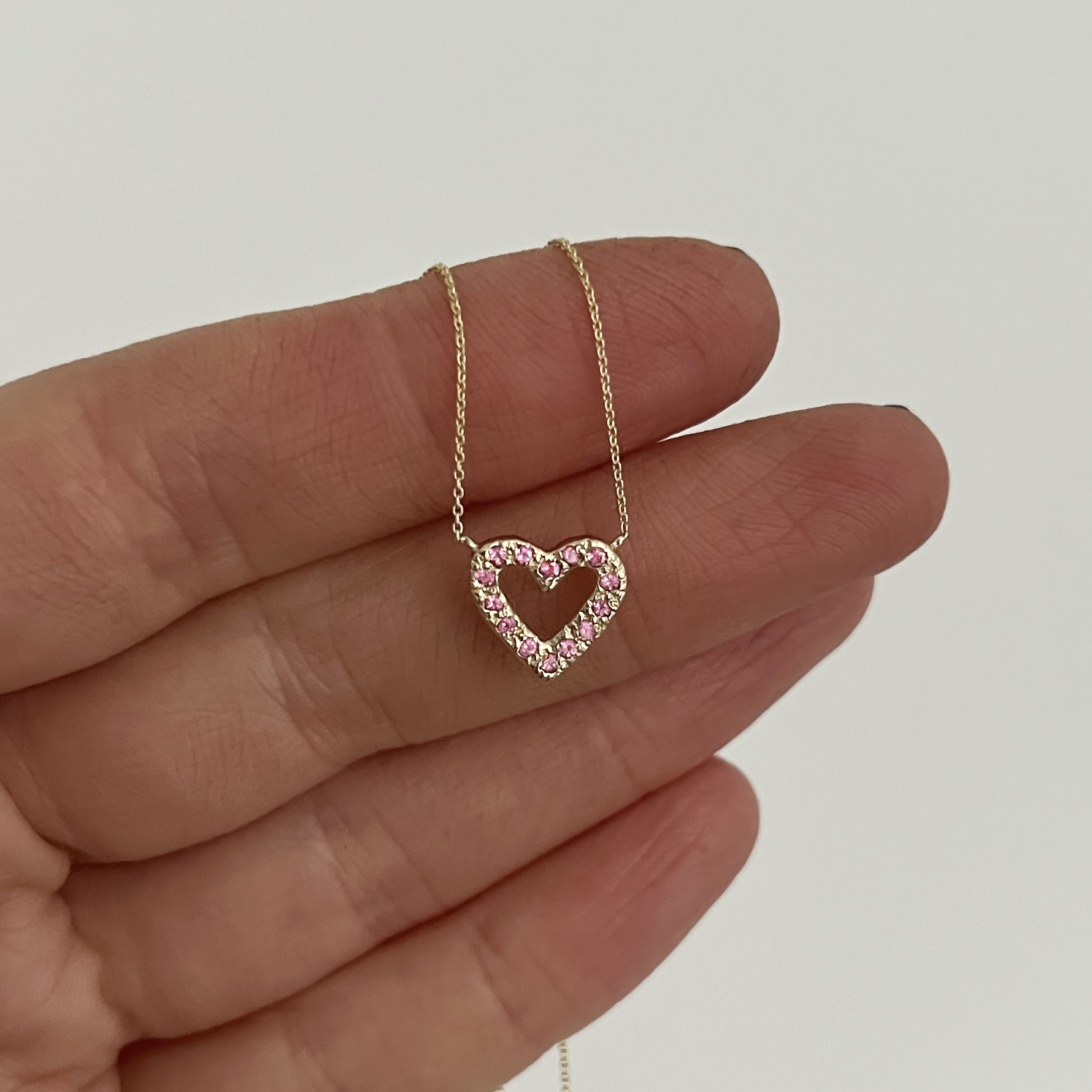 The classic symbol of love. This open heart necklace is set with your choice of birthstone. Choose from the following options: Garnet (January), Amethyst (February), Aquamarine (March), Diamond (April), Emerald (May), Pearl (June), Ruby (July), Peridot (August), Blue Sapphire (September), Pink Tourmaline (October), Citrine (November), Tanzanite (December). Handcrafted by Elisa.