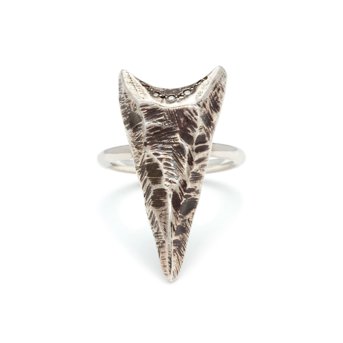 Blackened Sterling Silver Large Arrowhead Ring With White Diamonds