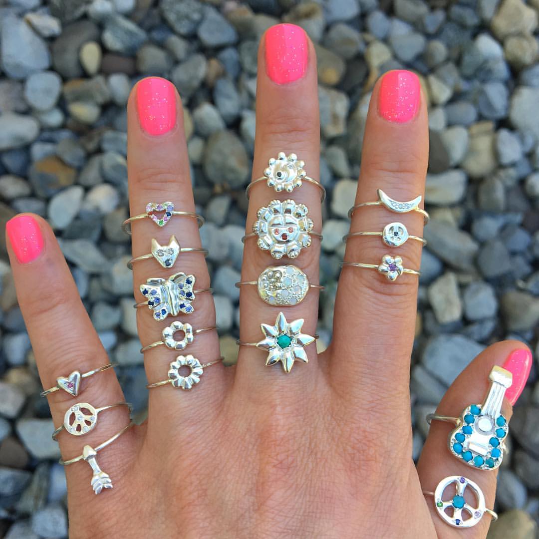 The peace sign is a signature in the collection. This 14 karat yellow gold peace disk ring is set with a Brazilian paraiba tourmaline. Handcrafted by Elisa.