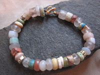 I’ve started breaking out my “Spring clothes” (ie: whites, brights, prints, lace, fringe!) and I’m especially into layering on my beaded bracelets again! Barer arms= plenty of space for stacks and stacks of beads! My beaded bracelets have been a much-loved item since their creation. The unique shape of the ancient beads mixed with my gold and silver carvings are an interesting combination, and I love how no two bracelets are the same. (Though I’m happy to try to duplicate them.) The bracelets are made on both 18 karat chain, silver chain, or suede. I wear a combination of 18 karat chain and suede styles. It’s fun having the option of wearing one as a cool, subtle accent or several for a luxurious bohemian look.