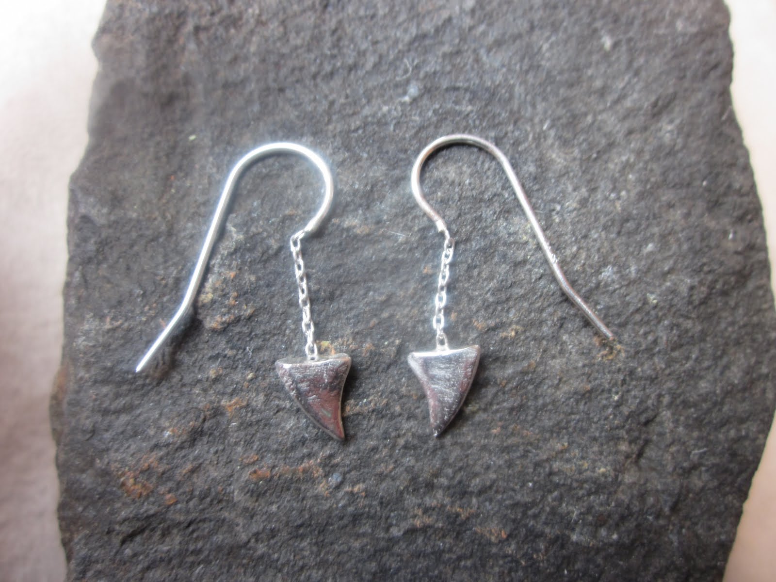 As promised, above are a few more images from the new shark tooth collection. I call these the “baby shark tooth earrings.” They have a delicate movement in your ears and aren’t real heavy, yet the shape makes a statement. The 18 karat yellow gold version has a rose-cut diamond set into each “tooth.” I love the slight texture in both the gold and silver teeth!