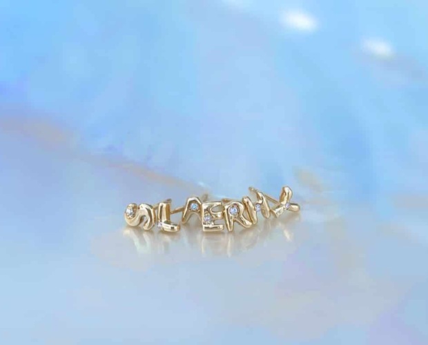 My favorite pieces are my diamond encrusted name rings. As you know, I am a ring girl. As a child, I loved stacking my mama’s rings from when she was little. I remember a gem encrusted ring, in particular, that we called the “princess ring.” My passion for rings continued as I grew up and certainly shows itself in the vast ring selection on my website. When I was pregnant with my son, I knew I needed something really spectacular to wear daily on my finger in his honor. I decided to carve his name. I wanted the letters to be classic looking with a slightly bohemian bubble letter look, reminiscent of my favorite rock and roll album covers from the Sixties. Since I planned to wear it daily, I decided strong platinum and white diamonds were the way to go. My brother picked up my finished ring from the jewelry district when I was in the hospital having Asher. He brought it to me and I put it on my finger holding my newborn baby boy. These rings had a beautiful birth and are very meaningful to me. When I was expecting Layla, I carved her name in the same precious style. Between my two babies, I also carved my mama a Meme ring, since that’s what my son calls her.